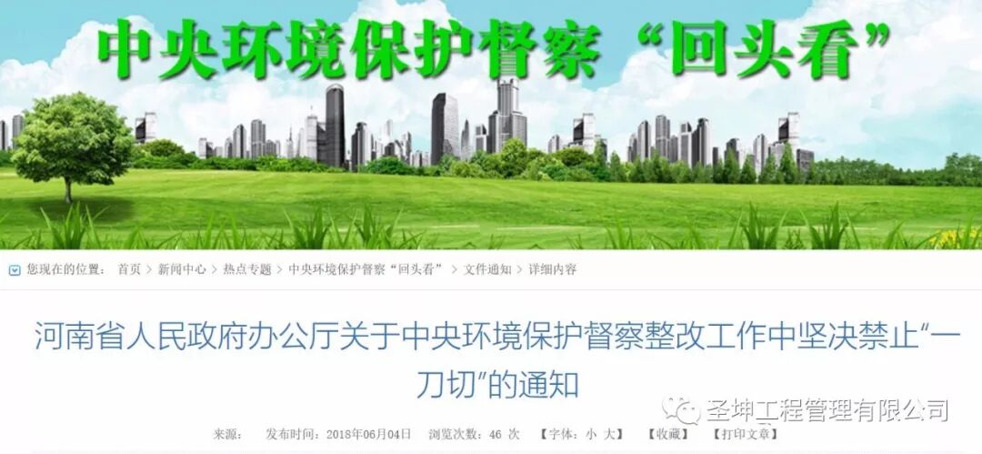 省中央环境保护督察“回头看”工作协调联络组下发通知要求要做好禁止生态环境保护问题整改“一刀切”: