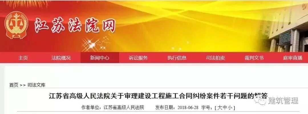 2018年6月12日,江苏省高级人民法院召开第6次审判委员会,对建设工程施工合同纠纷案件审理中的若干问题进行了专题讨论。近年来,随着建筑业改革不断推进,新型建设工程合同纠纷不断涌现,建设工程施工合同纠纷案件审理中遇到许多疑难复杂问题。为公正、规范地审理建设工程施工合同纠纷案件,依法维护健康有序的建筑市场环境,根据《中华人民共和国民法总则》、《中华人民共和国合同法》、《中华人民共和国建筑法》、《中华人民共和国民事诉讼法》、《最高人民法院关于审理建设工程施工合同纠纷案件适用法律若干问题的解释》(简称《建设工程司法解释》)等相关法律、行政法规、司法解释规定,结合我省实际情况,制定本解答: