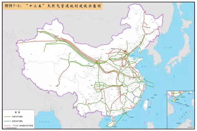 建设中俄原油管道二线、仪长复线、连云港—仪征、日照—洛阳、日照—沾化、董家口—东营原油管道。新建樟树—株洲、湛江—北海、洛阳—临汾、三门峡—西安、永坪—晋中、鄂渝沿江等成品油管道,改扩建青藏成品油管道,适时建设蒙西、蒙东煤制油外输管道。建设中亚D线、中俄东线、西气东输三线(中段)、西气东输四线、西气东输五线、陕京四线、川气东送二线、新疆煤制气外输、鄂尔多斯—安平—沧州、青岛—南京、重庆—贵州—广西、青藏、闽粤、海口—徐闻等天然气管道,加快建设区域管网,适时建设储气库和煤层气、页岩气、煤制气外输管道。 |
