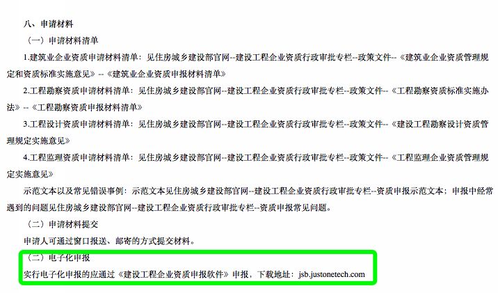 实行电子化申报的应通过《建设工程企业资质申报软件》申报,下载地址:jsb.justonetech.com,进入该网址后可下载资质申报软件: